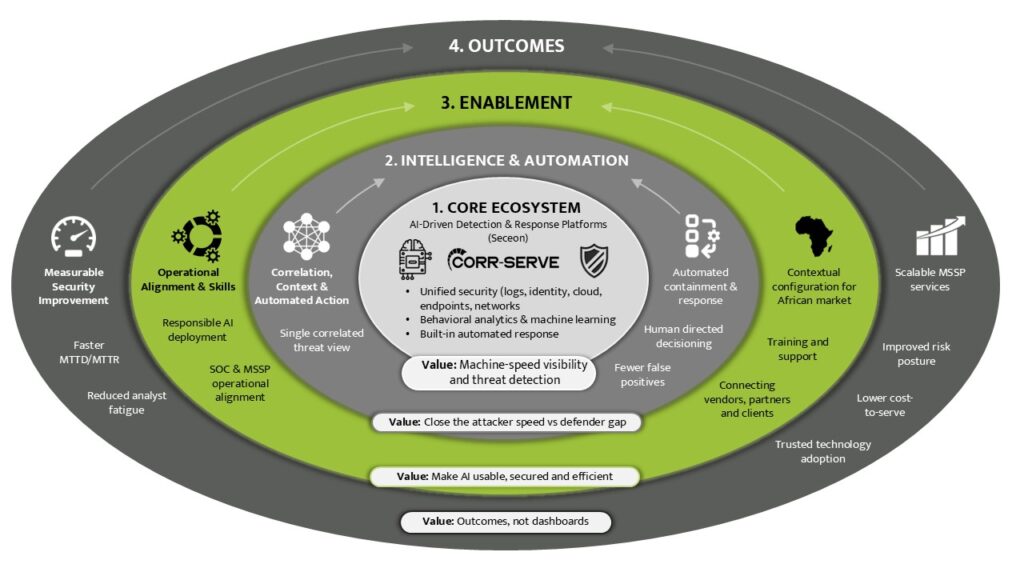 That’s why the next wave of cybersecurity isn’t built around tools — it’s built around intelligence. AI-driven cybersecurity marks a step change in how threats are detected, prioritised, and contained. At Corr-Serve, our work with global leaders like Seceon brings these capabilities into African realities, enabling partners to operationalise real-time detection and automated response responsibly and measurably.
